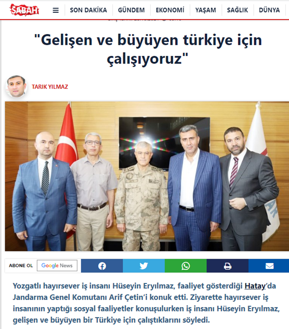 Basına yansıyan ziyarette Eryılmaz’ın Çetin’e söylediği “Gelişen ve büyüyen büyük Türkiye için çalışıyoruz” sözleri Sabah Gazetesi’nin haberinin başlığında yer almıştı.