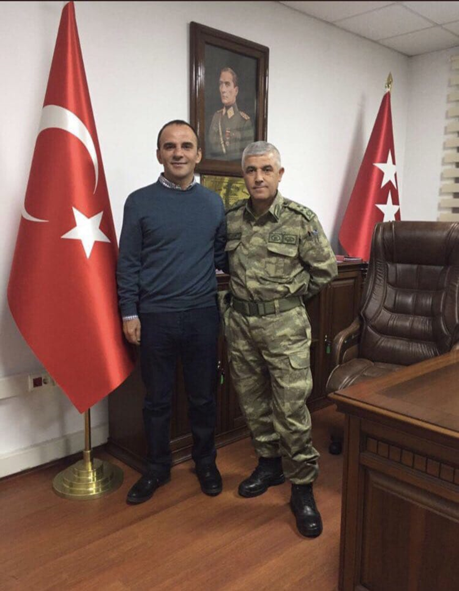 Ferhat Aydoğan, deprem nedeniyle Kahramanmaraş’ta kurulan Jandarma Genel Komutanlığı Mobil Harekât Merkezi’nde çekilmiş fotoğrafları “Vatanımızın yiğitlerinden jandarma teşkilatımızın Genel Komutanı Sn Arif Çetin Paşamı #Kahramanmaraş’ta ziyaret ederek 36 gündür Afet bölgelerindeki özverili çalışmalarından dolayı teşekkür ettik” mesajıyla paylaşmıştı.