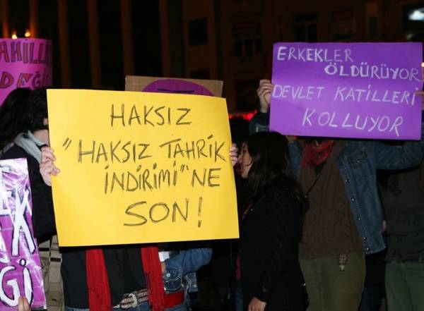 TCK’ya göre kadına karşı işlenmiş cinayet suçunda ağırlaştırılmış müebbet hapis cezası uygulanıyor. Ancak, cinayet suçunun “haksız bir fiilin meydana getirdiği hiddet veya şiddetli eylemin etkisi altında” işlendiği değerlendirilerek haksız tahrik indirimi uygulanması halinde ağırlaştırılmış müebbet hapis cezası yerine 18 yıldan 24 yıla kadar hapis cezası veriliyor.