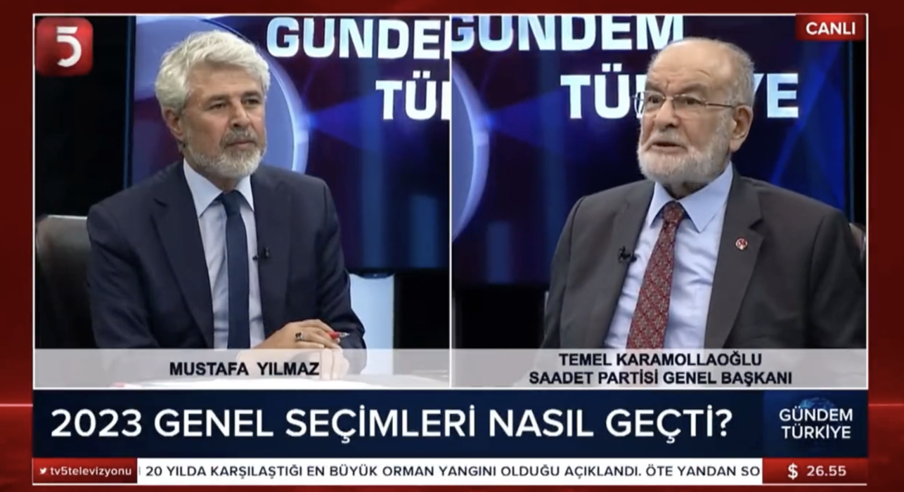 Saadet Partisi Genel Başkanı Temel Karamollaoğlu, TV5’te katıldığı canlı yayında seçim sonuçlarına ilişkin değerlendirmelerde bulundu.