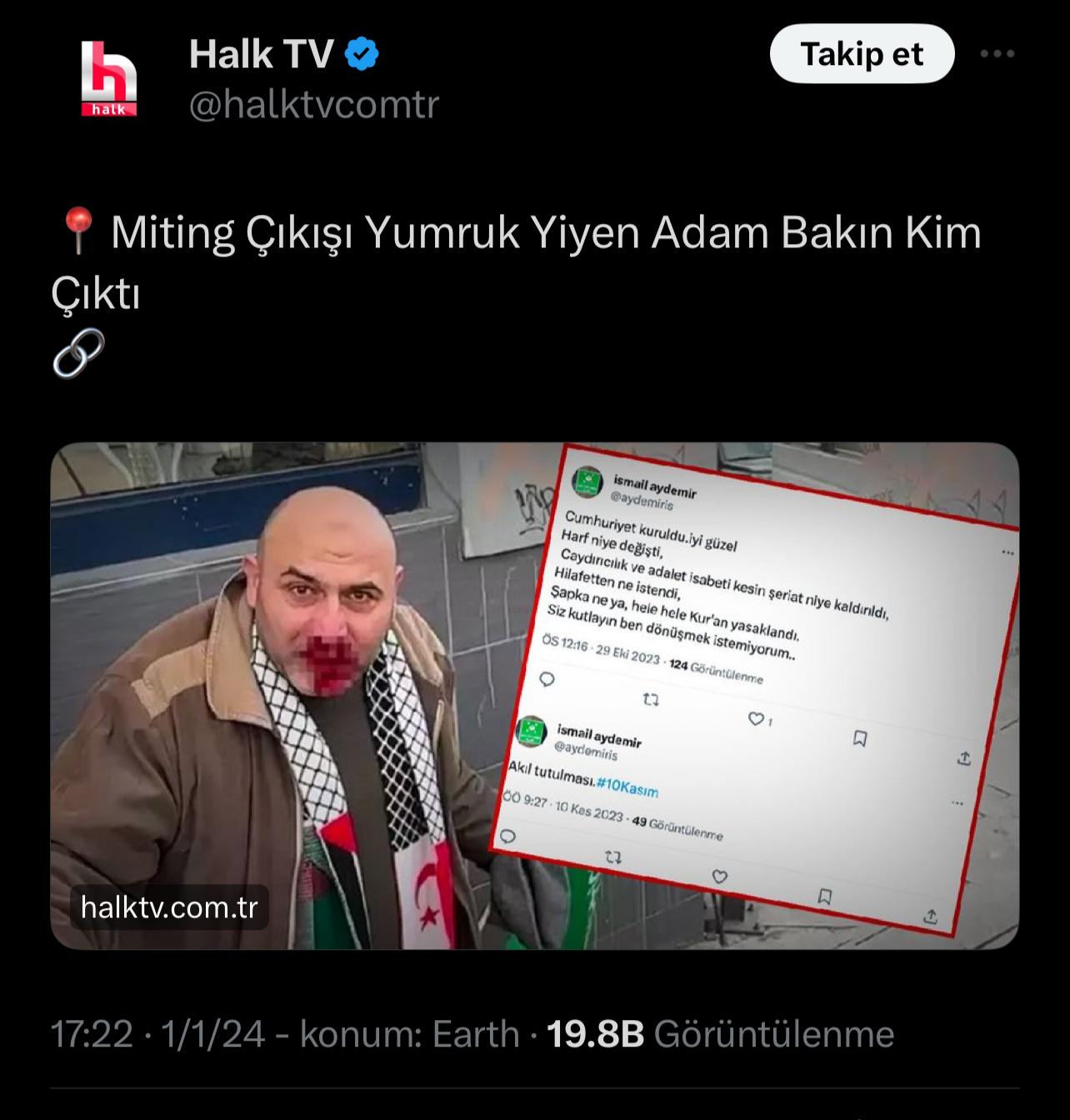 Halk Tv saldırıya uğrayan kişinin eski tweetlerinden haber yaptı ve sildi.