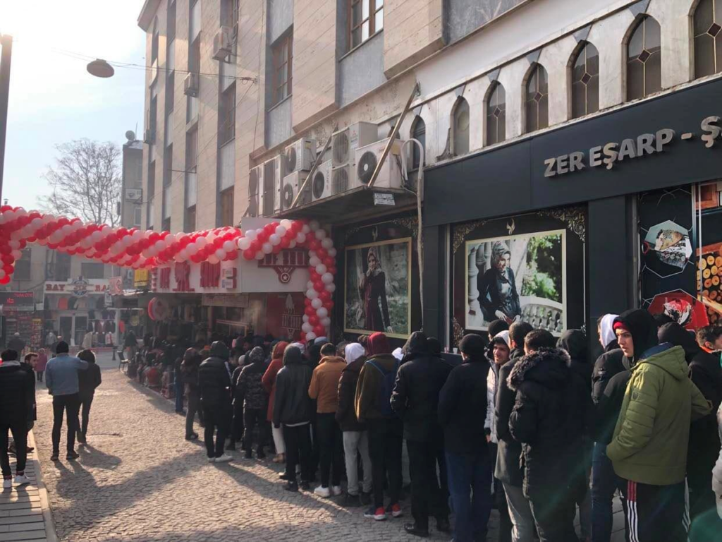 AK Parti’nin en yüksek oy aldığı illerin başında gelen Konya’da Eski Dersaneler Sokağı’nda bir mağaza “Geleneksel” başlığı altında sezon sonu indirimine gittiğini duyurdu. İndirim haberini alan vatandaşlar sabahın erken saatlerinde, -2 derece soğuğa rağmen mağaza önünde yüzlerce metrelik kuyruk oluşturdu.