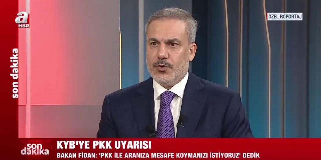 “KYB Süleymaniye’de PKK ile iş birliği içinde. Defalarca Süleymaniye’deki KYB yönetimiyle bir araya geldik. Her seferinde de ‘Biz sizden PKK ile aranıza mesafe koymanızı istiyoruz. Bu adamlar buradaki altyapıyı kullanıyorlar, siz bunlara kimlik veriyorsunuz. Hastane ortamı, ikamet ortamı sağlıyorsunuz. Eylem yapma imkanı sağlıyorsunuz. Biz sizden direkt bunlarla savaşmanızı da beklemiyoruz. Biz sizin güç dengenizi anlıyoruz. Biz sizin onlarla iş birliği içinde olmanızı istemiyoruz. Bu sizi düşman sınıfına sokar, bundan vazgeçin’ dedik.
