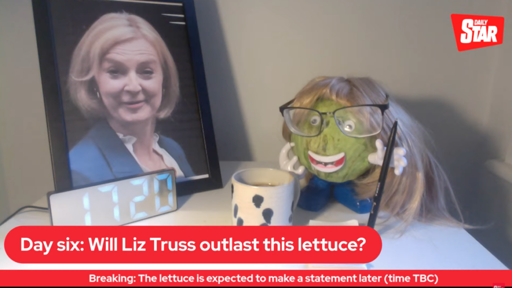 The Economist’in bu karşılaştırması sosyal medyada sayısız yorum ve şakaya konu olunca, tabloid gazete Daily Star, “Liz Truss mı yoksa bir marul mu daha dayanıklı?” kampanyası başlattı. Daily Star, süpermarket Tesco’dan 60 kuruşa bir marul aldı ve 14 Ekim’de internet sitesinden canlı yayın başlatarak, okuyucularına başbakanın mı yoksa marulun mu daha uzun süre dayanacağını izleme imkânı tanıdı. Kriz önce maliye bakanının, ardından içişleri bakanının istifasıyla derinleşince, Daily Star’ın esprili kampanyasına ilgi çığ gibi büyüdü.