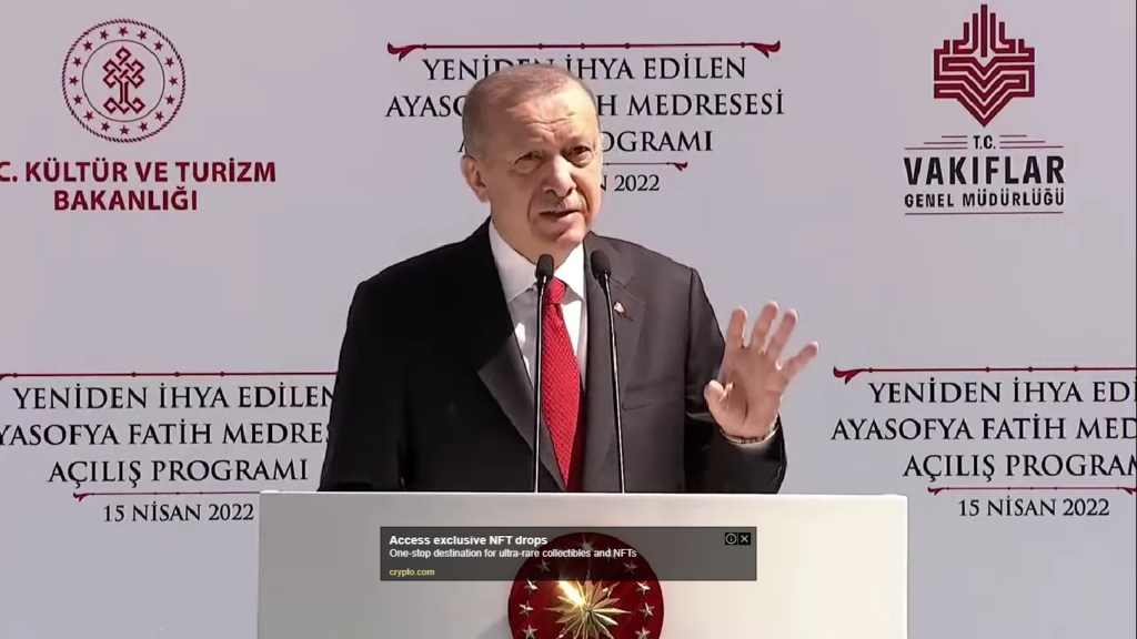 Ayasofya Fatih Medresesi’nin açılışında konuşan Erdoğan: “Batılılaşma adına yapılanlar hem milli bünyemizde hem milletimizin hafızasında çok yaralar açmıştır. Bizans hayranı, Batı’dan çok batıcı, milletin değerleri ile kavgalı bu zihniyet binlerce yıllık kültür hazinemizin kıymetini de bilememiştir. Her alanda maziden atiye köprüler kurmanın gayretindeyiz. Özellikle, Batı kültürü ve hayat tarzının tüm dünyayı istila ettiği günümüzde, asli kimliğimizi koruyarak varlığımızı sürdürebilmenin başka yolu yoktur.”