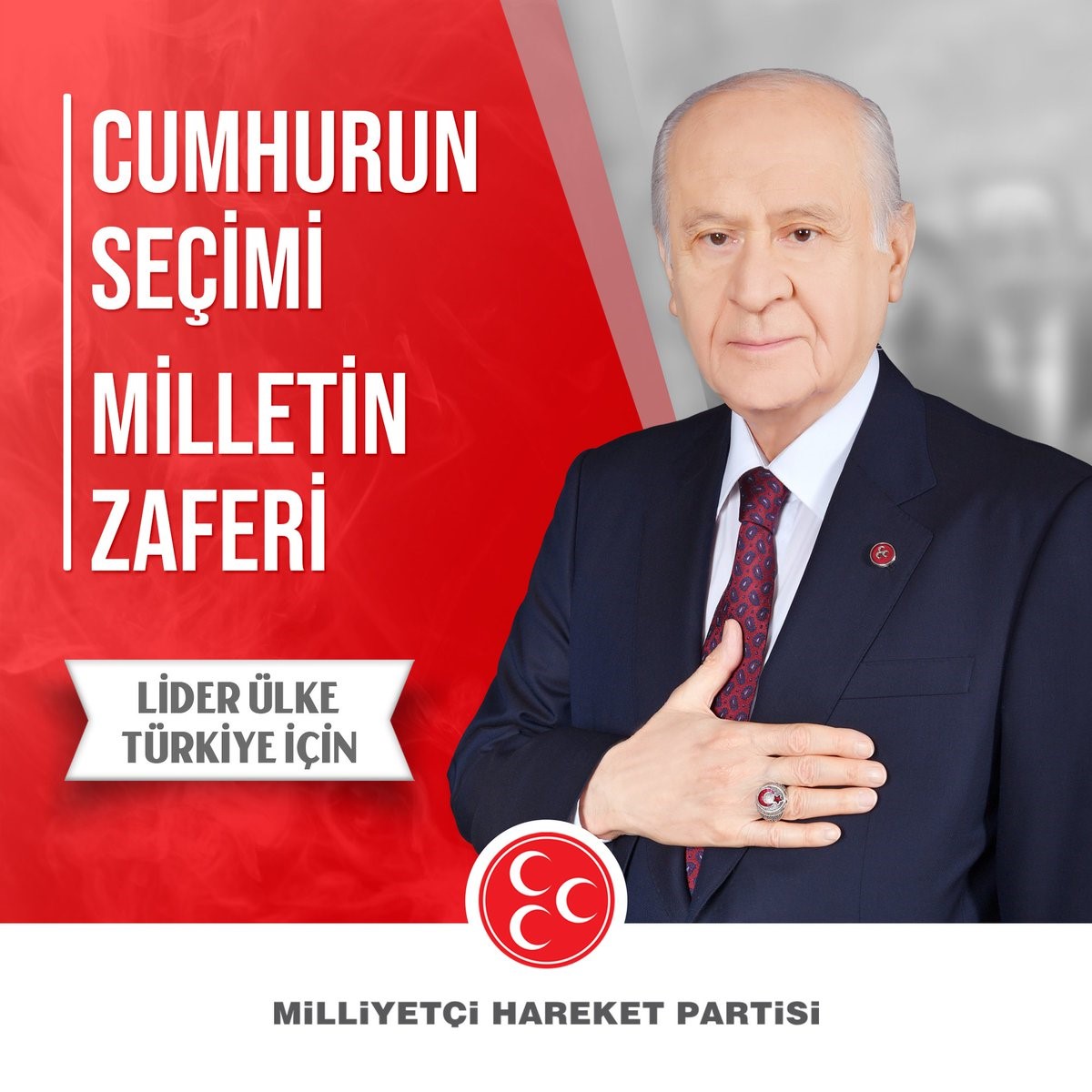 Üzerinde MHP lideri Devlet Bahçeli’nin fotoğrafının ve “Cumhurun Seçimi Milletin Zaferi” sloganının olduğu bir görsel dün (15 Aralık) MHP’nin resmi hesabı başta olmak üzere partili milletvekilleri, il ve ilçe örgütlerinin resmi hesaplarından paylaşıldı.