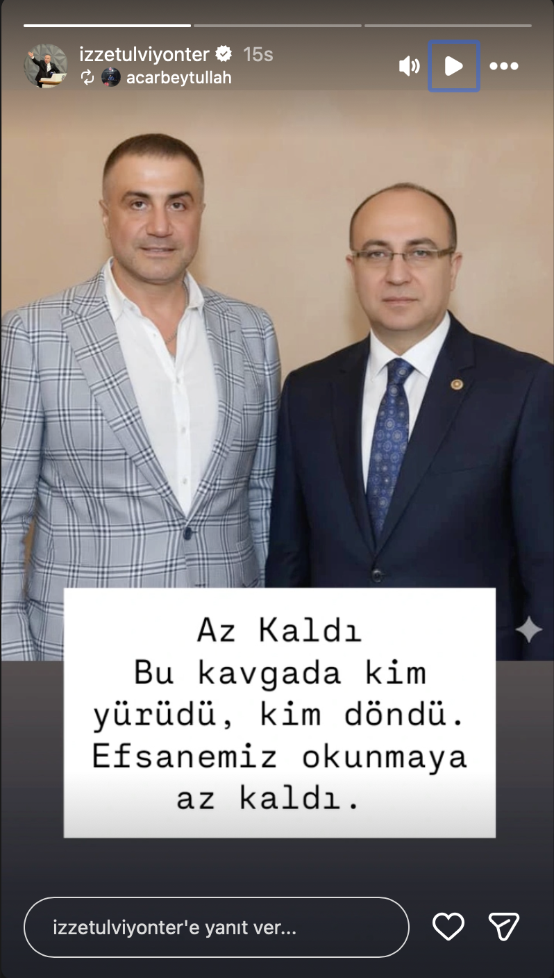 HaberlerManşet MHP’li Yönter Sedat Peker’le fotoğrafını paylaştı: “Efsanemiz okunmaya az kaldı” Serbestiyet - 21 Ekim 2025 - 12:00 MHP Genel Başkan Yardımcısı İzzet Ulvi Yönter, Instagram hesabından Sedat Peker’le fotoğrafını paylaştı. Yönter, fotoğrafın altına şu notu düştü: “Az kaldı. Bu kavgada kim yürüdü, kim döndü. Efsanemiz okunmaya az kaldı.” MHP Genel Başkan Yardımcısı İzzet Ulvi Yönler, Sedat Peker'le fotoğrafını paylaştı:"Az kaldı. Bu kavgada kim yürüdü, kim döndü. Efsanemiz okunmaya az kaldı." pic.twitter.com/A7eKrheBZl— serbestiyet (@serbestiyetweb) October 21, 2025