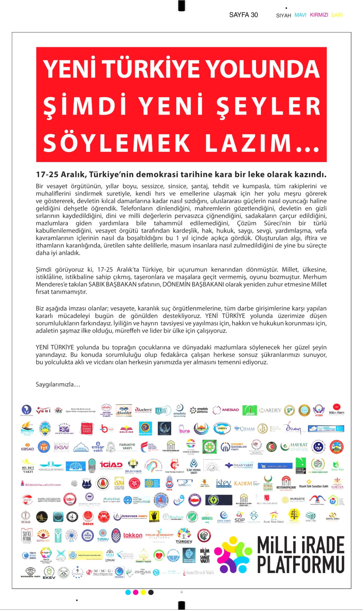 25 Aralık 2014 tarihli “Yeni Türkiye Yolunda Şimdi Yeni Şeyler Söylemek Lazım” başlıklı bildiri.