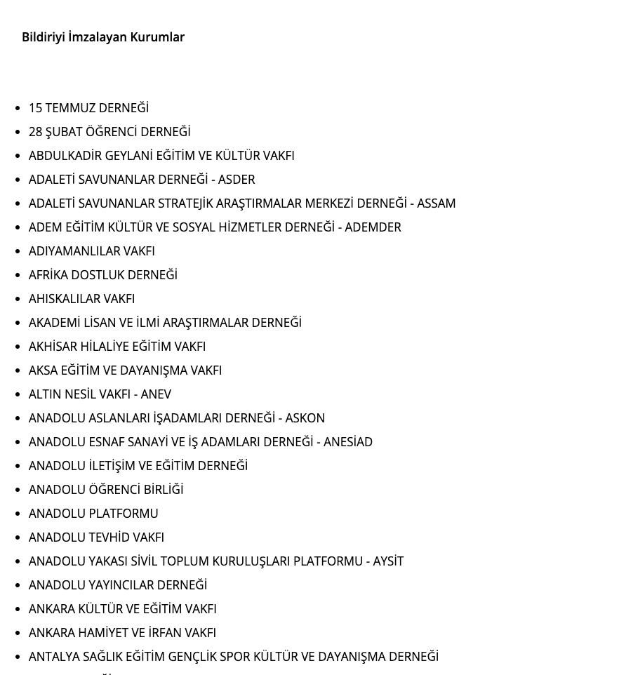 Platformun bildirisinde, metne imza atan STK’ların isimleri ve logoları yer almadı.