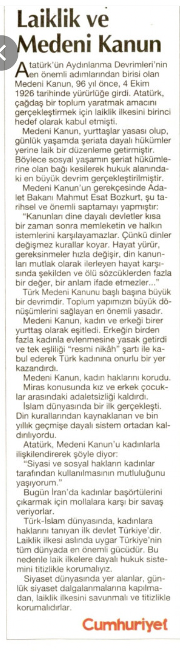 Ayrıca gazetenin ilk sayfasında Cumhuriyet imzasıyla yayınlanan başyazıda ise şu ifadeler kullanıldı: