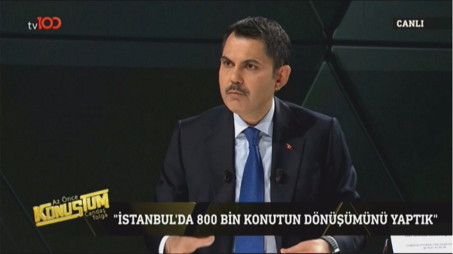 AK Parti İstanbul Büyükşehir Belediye Başkan Adayı Murat Kurum, TV100’de yayınlanan Candaş Tolga Işık ile Az Önce Konuştum programına katıldı.