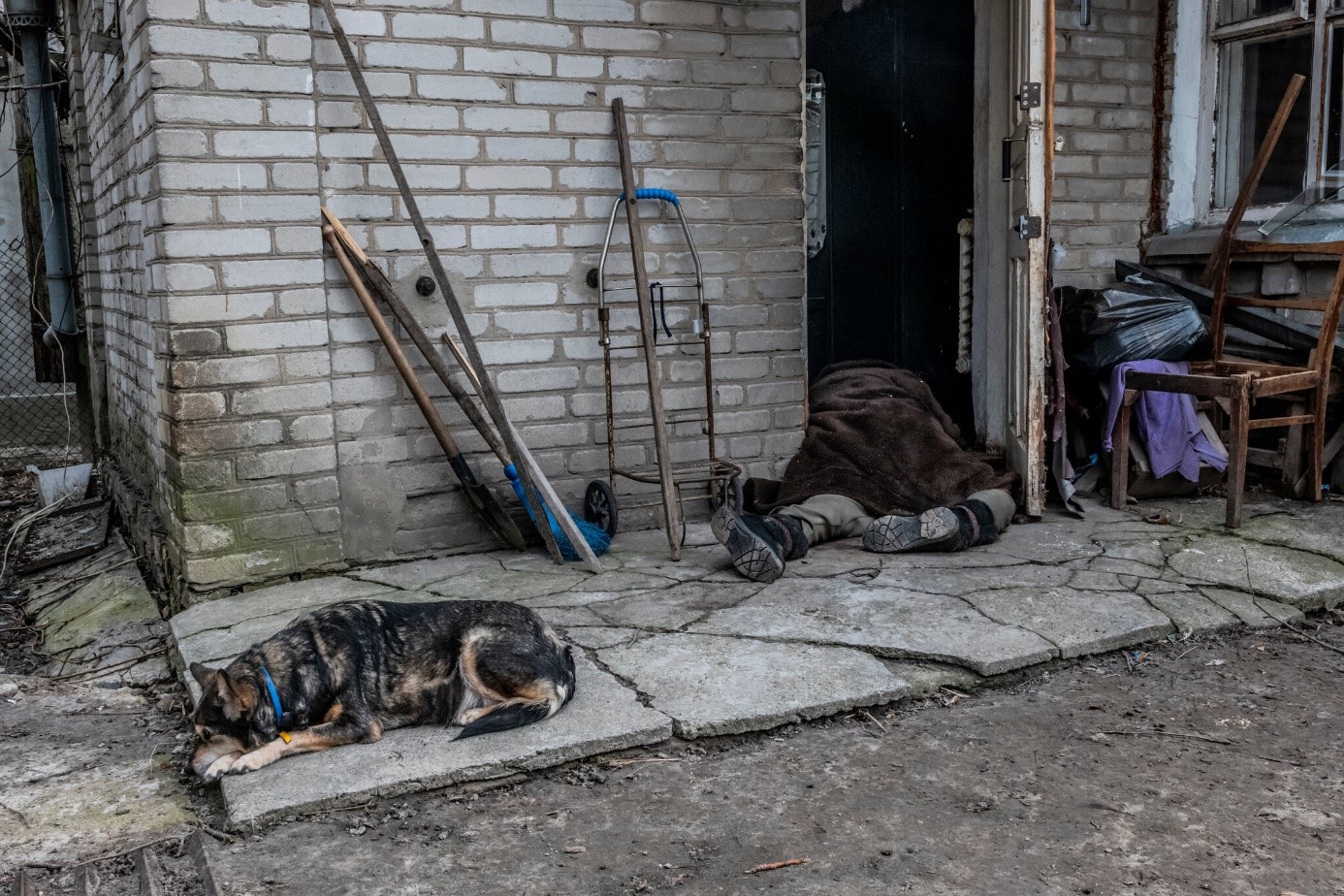 Adı Lyudmyla’nın kısaltmasıyla “Lyuda Teyze” diye bilinen emekli bir öğretmen, 5 Mart’ta küçük bir ara sokaktaki evinin kapısını açarken vuruldu. Cansız bedeni bir aydan uzun bir süre evinin girişinde kaldı.