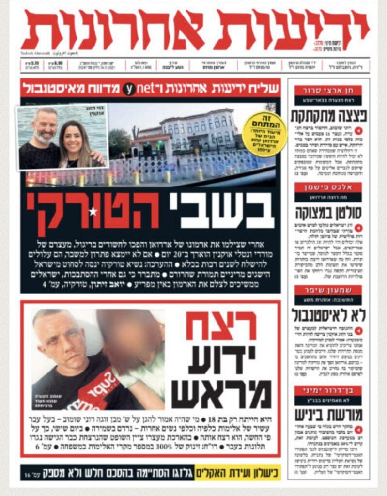 İsrailli çiftin mahkemece tutuklanmasını “İkisi de Türkiye’nin elinde tutsak” başlığıyla manşetine taşıyan Yediot Ahronot gazetesi’nden Yoav Zeytun, Oknin’in gözaltına alınmasına neden olan binayı yayınladı
