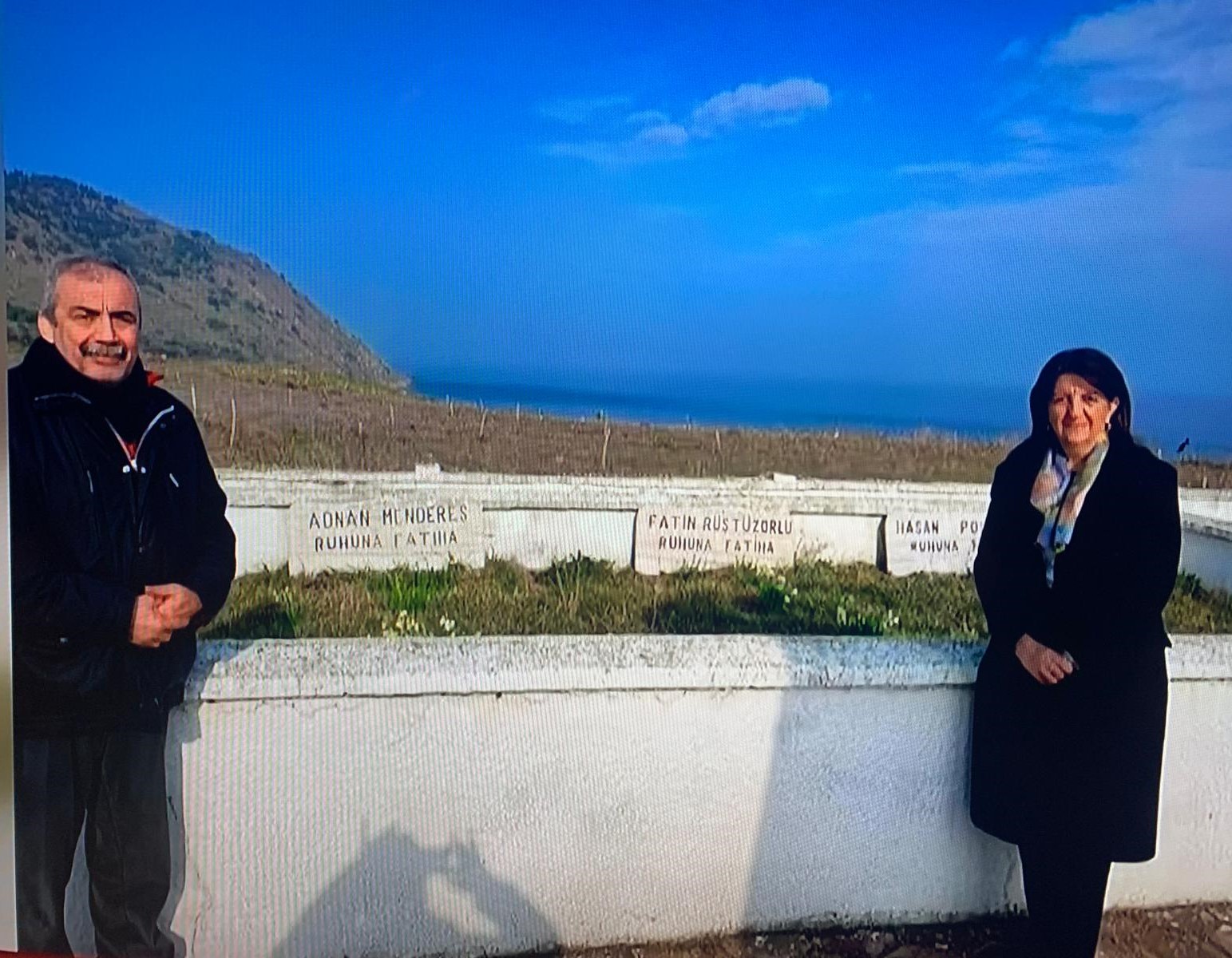 Önder; Adnan Menderes, Fatin Rüşdü Zorlu ve Hasan Polatkan’ın İmralı Adası’nda idam edilmelerinin ardından defnedildikleri ilk mezarları ziyaret ettiklerini anlattı ve ziyaretten fotoğrafları paylaştı.