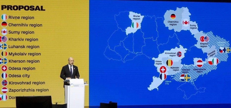 3-5 Temmuz’da İsviçre’nin Lugona kentinde İsviçre ve Ukrayna’nın ortak düzenlediği “Ukrayna Islah Konferansı’nda NATO müttefikleri ve Ukrayna’ya destek veren Batılı ülkeleri Ukrayna’nın işgal sonrasında gördüğü hasarın giderilmesine yönelik çözüm önerilerini gündeme getirdi. Bu konferans sonucunda Avrupa ve NATO ülkeleri Ukrayna’nın belirli bölgelerinde işgal sonrası restorasyon ve yeniden inşa çalışmalarına finansal ve organizasyonel destek verme tahattütlerinde bulundu. Türkiye ve ABD ise ortak bir şekilde Ukrayna’nın en büyük ikinci kenti olan Harkov’un yeniden inşasında destek sağlayacaklarını tahahhüt etti. Harkov’da yaklaşık 3.500 bina Rus işgali nedeniyle hasar gördü, yıkıldı.