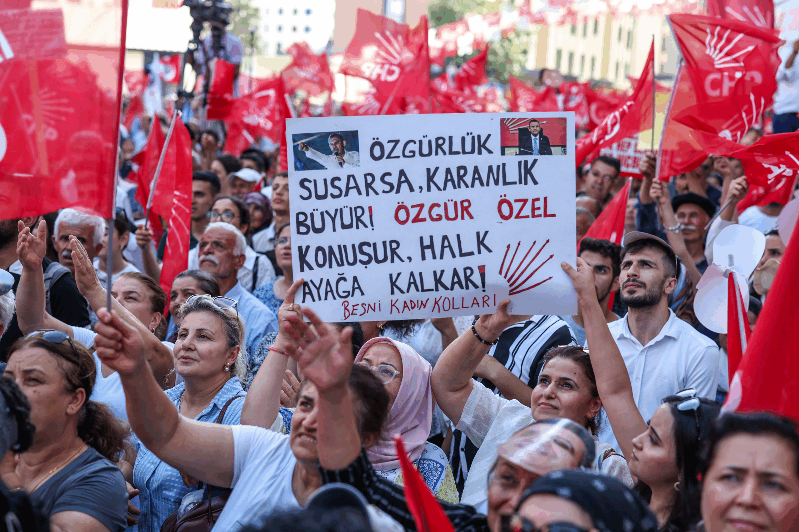 CHP’nin Cumhurbaşkanı adayı ve görevden uzaklaştırılan İBB Başkanı Ekrem İmamoğlu’nun tutuklanmasıyla başlatılan “Millet İradesine Sahip Çıkıyor” mitinglerinin bugünkü durağı görevden uzaklaştırılan Belediye Başkanı Abdurrahman Tutdere için Adıyaman oldu. CHP lideri Özgür Özel konuştu.