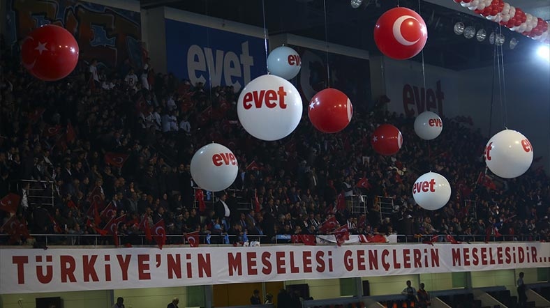 Başbakan Yıldırım'ın seçim bölgesi İzmir il teşkilatınca hazırlanan, "Mesele memleket olunca teferruat olur siyaset, İzmir'in kararı net evet" ve "İzmir'in sevdasını bilmek gerek, söz konusu vatansa tabii ki evet" pankartları da dikkati çekti.