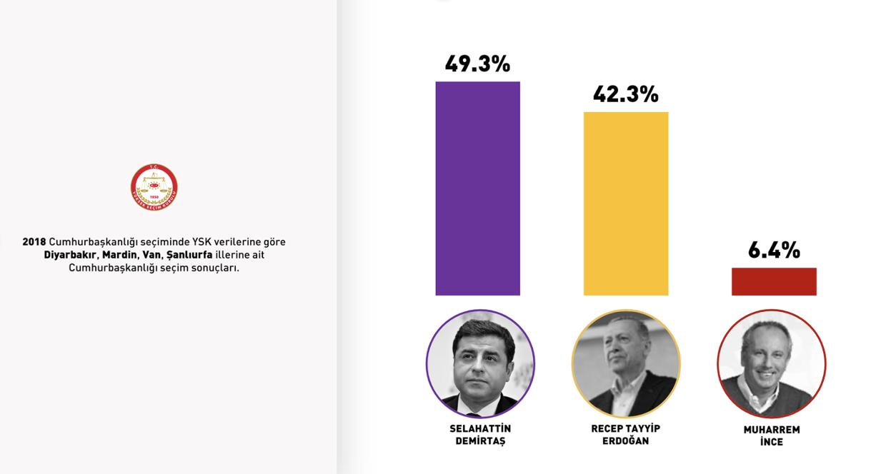 2018’deki Cumhurbaşkanlığı seçiminde Diyarbakır, Mardin, Urfa ve Van’da adayların aldığı oy oranları şöyleydi: