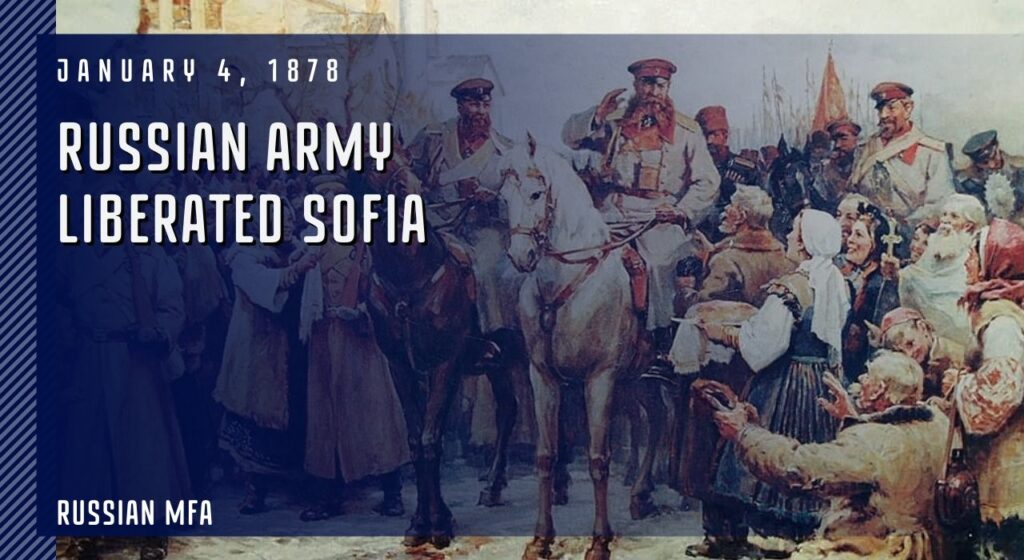 Dışişleri, Sofya’da Osmanlı egemenliğinin bitişini “1878’de Rus-Türk savaşı sırasında Rus birlikleri Bulgaristan başkentini Osmanlı İmparatorluğu’nun zulmünden kurtardı. Sofya sakinleri Rusları coşkuyla karşıladı” mesajıyla paylaştı.