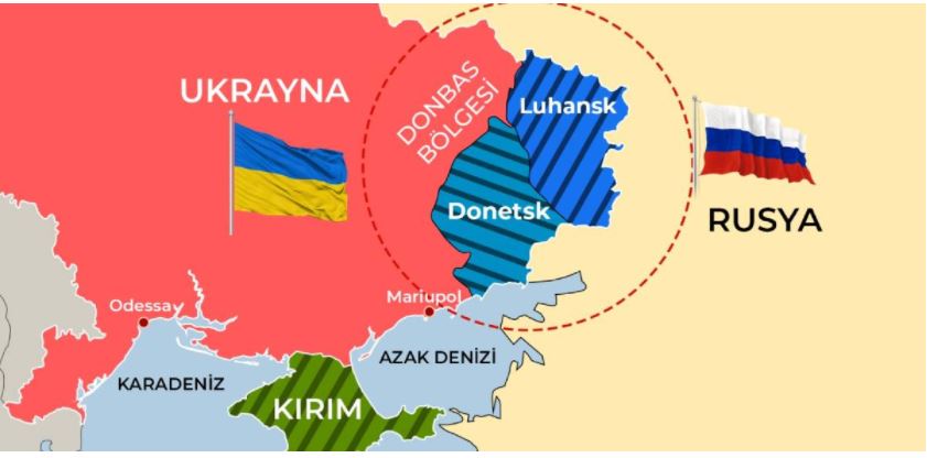 Rusya Devlet Başkanı Vladimir Putin, “Donbas” dediği zaman, Ukrayna’nın eski kömür yataklarını ve demir üretim merkezini kast ediyor. Aslında bahsettiği yer doğudaki iki büyük bölge; Luhansk ve Donetsk, yani ülkenin Mariupol’den başlayıp en kuzeye kadar olan neredeyse tüm doğu bölgesi.