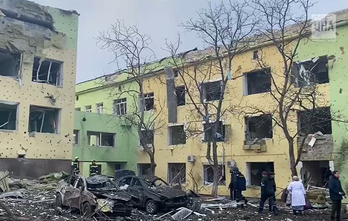 Ukrayna Devlet Başkanı Volodimir Zelensky sosyal medya hesabından, kullanılamaz hale gelmiş hastane binasının içinden çekilmiş bir videoyu paylaşarak şunları söyledi: