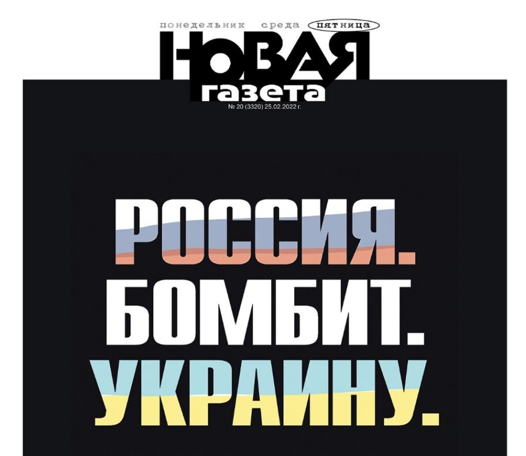 Novaya Gazeta, işgalin başladığı hafta Rusça ve Ukraynaca dilince “Rusya, Ukrayna’yı bombalıyor” manşetiyle çıkmış, dünyaca ünlü editörü Dimitri Muratov, “Ukrayna’yı düşman, Ukrayna dilini de düşmanın dili olarak tanımayı reddediyoruz. Bunu asla kabul etmeyeceğiz” demişti.