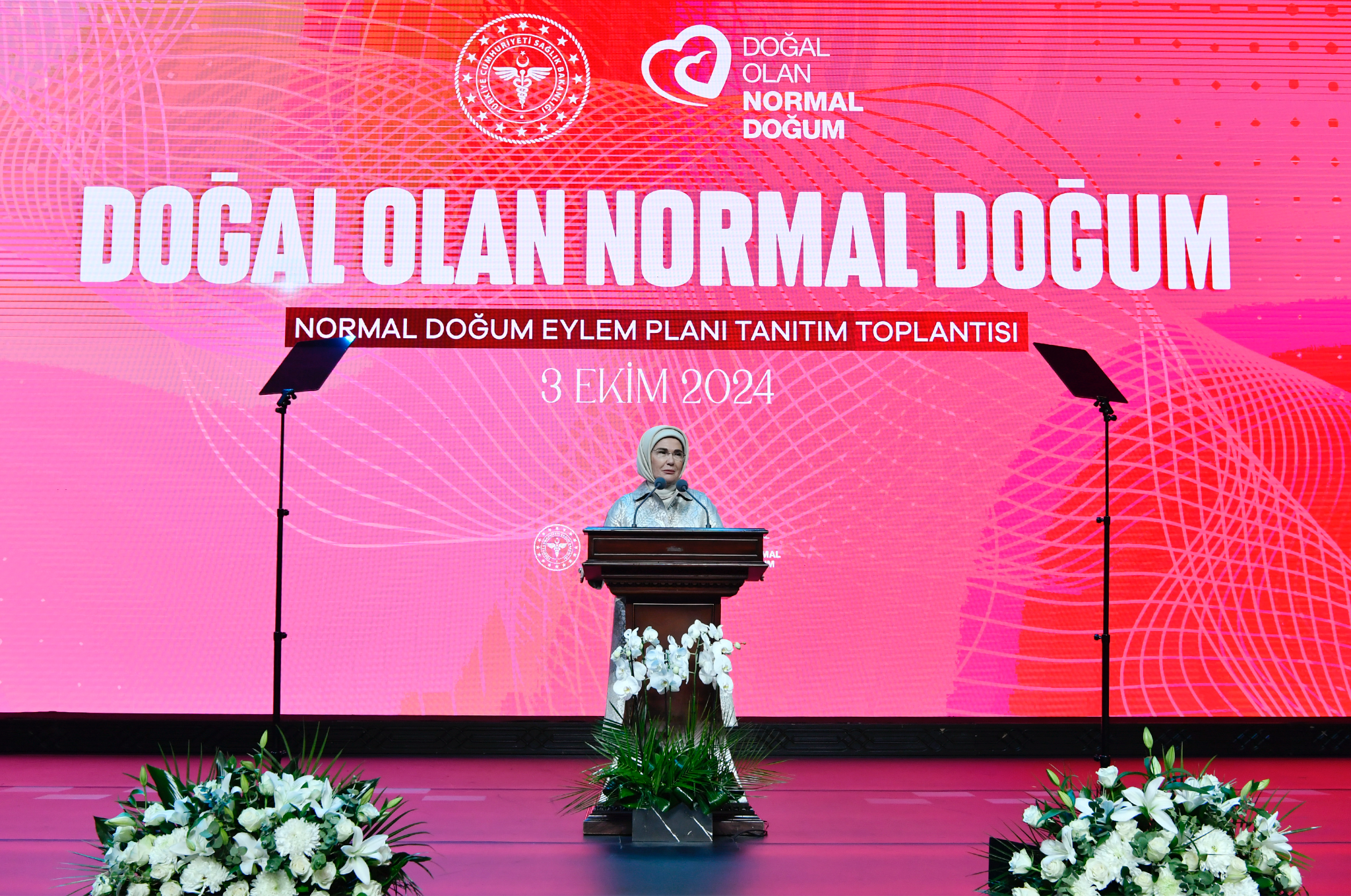 Eylem planının tanıtım toplantısında Emine Erdoğan sezaryenin anne bebek arasındaki ilişkide hasar bıraktığına, normal doğumun faydalarına değindi.