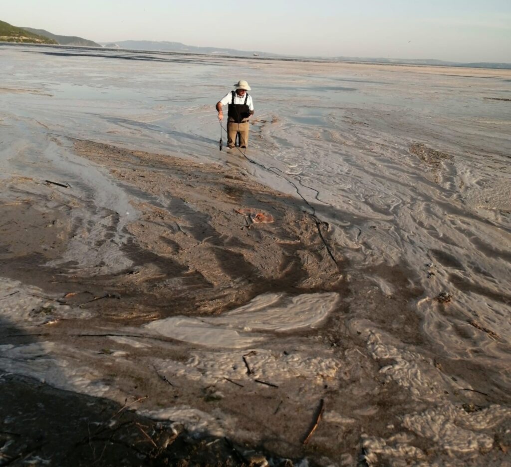 “Deniz yüzeyini kaplayan müsilaj tabakasının üst kısmı kuruyor ve esnek bir yapıya dönüşüyor. Multimetre probu birden batmıyor suya.”