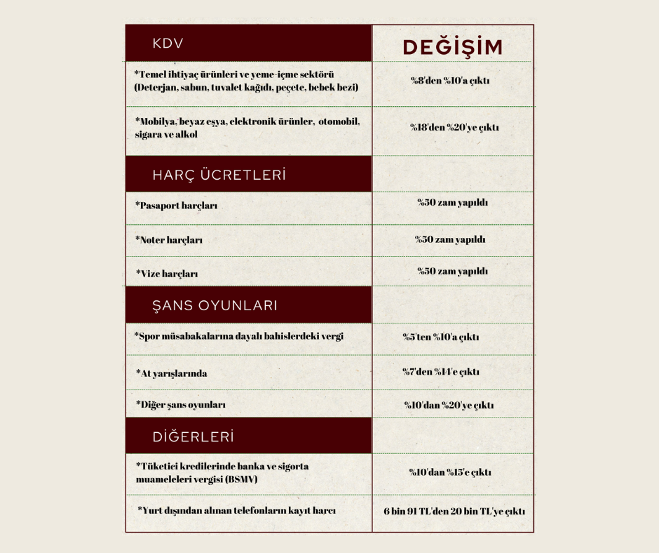Katma Değer Vergisi (KDV), yüzde 18 olan ürünlerde yüzde 20’ye, yüzde 8 olan ürünlerde ise yüzde 10’a çıkarıldı.