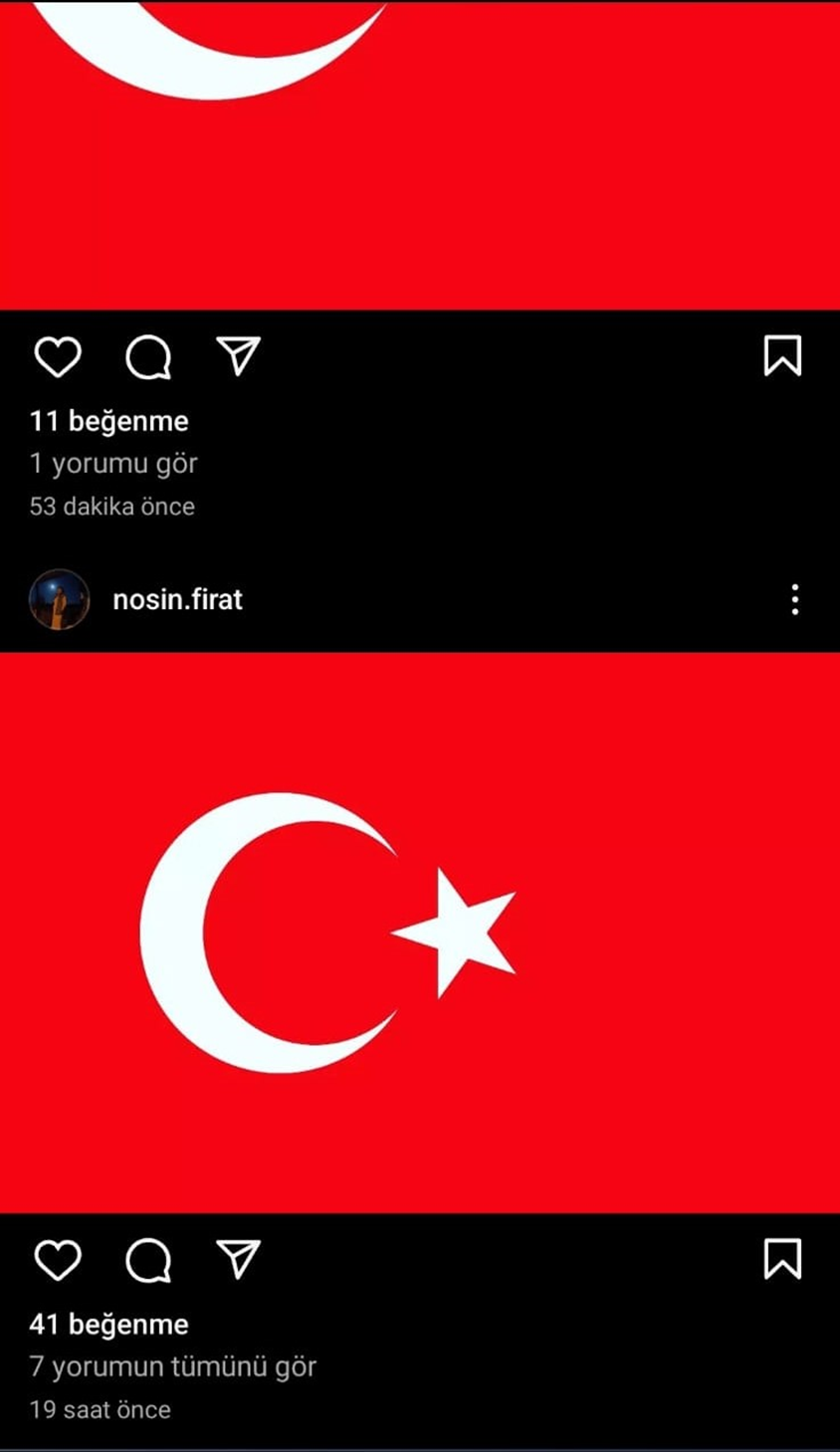 Noşin Fırat, adli kontrol kararı uyarınca dün itibariyle suçlamaya konu olan paylaşımların yapıldığı sosyal medya hesaplarından bayrak paylaşımlarına başladı.