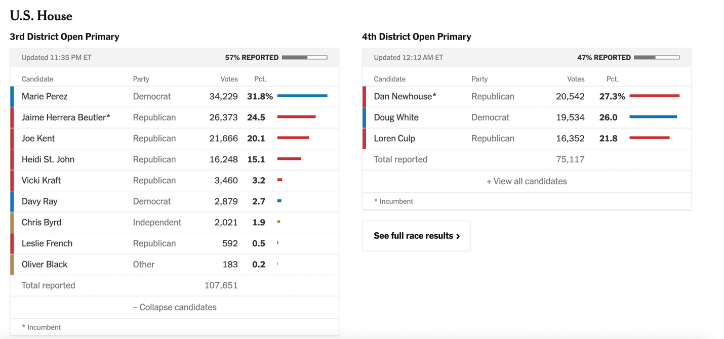 Trump aleyhine oy kullanan iki Cumhuriyetçi Temsilciler Meclisi üyesi Dan Newhouse ve Jaime Herrera Beutler ise önseçimlerde Trump’çı adayları yenerek aday olma hakkı kazandı. Trump, azil oylamasında kendisi aleyhine oy kullanan Cumhuriyetçilerin karşısına önseçimlerde Trump’çı adayları çıkartarak parti içi muhalefeti sıfıra indirmeyi amaçlıyor.