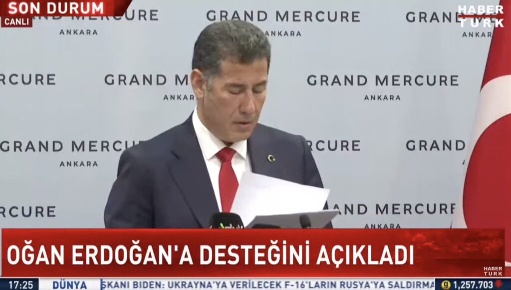 “28 Mayıs seçimleri ikinci turunda Cumhur İttifakı adayı Sayın Erdoğan’ı destekleyeceğimizi ilan ediyorum.”
