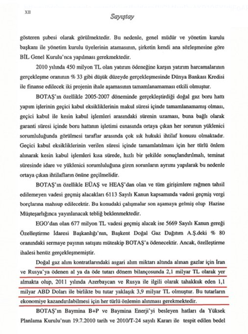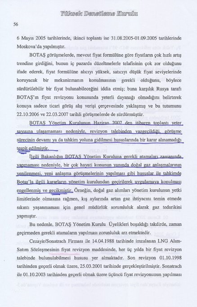12-Dönemin Başbakanlık Yüksek Denetleme Kurulu Raporuna göre… Yapılan değişiklik sonucunda 2003 – 2007 yılları arasında alınan gaz dolayısıyla BOTAŞ’ın yani Türkiye’nin ödemesi gereken ek fatura yani zarar 526 Milyon Dolar… İşte Raporun ilgili sayfaları…