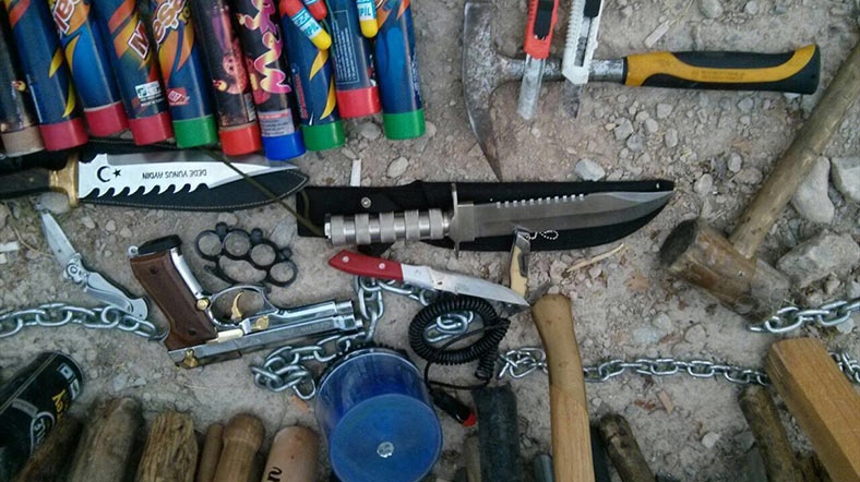 Polisin yaptığı aramalarda ise taraftarların üzerinde çok sayıda bıçak gibi kesici alet ve sopa ele geçirildi.