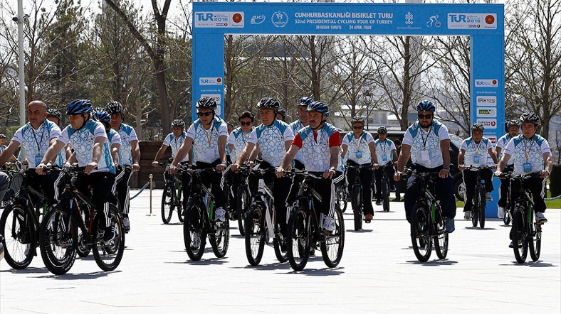 Tören öncesinde Gençlik ve Spor Bakanı Akif Çağatay Kılıç, Sağlık Bakanı Mehmet Müezzinoğlu, gazeteciler ve sporcuların da bulunduğu grup, bisikletleriyle tanıtım turunun düzenlendiği alana geldiler.