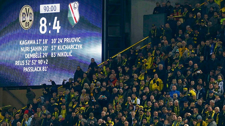 F Grubu maçında Almanya'nın Borussia Dortmund takımı konuk ettiği Polonya'nın Legia Varşova takımını 8-4 mağlup etti. Marko Reus'un "hat-trick" yaptığı maçta, Türk futbolcu Nuri Şahin 70 dakika sahada kalırken bir gole imza attı. Diğer Türk futbolcu Emre Mor ise yedek soyundu.