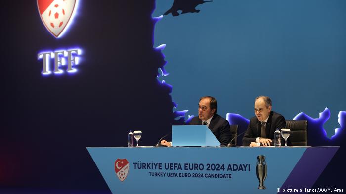 EURO 2024'e ev sahipliği hakkını kazanacak ülke, 27 Eylül Perşembe günü İsviçre'nin Nyon kentinde UEFA Yönetim Kurulu'nun 17 üyesinin katılımıyla yapılacak oylama sonucunda belli olacak. Oylamaya UEFA Başkanı Aleksander Ceferin'in yanı sıra Yönetim Kurulu'nun Alman üyesi Reinhard Grindel ve Türk üyesi Servet Yardımcı katılmayacak. Grindel aynı zamanda DFB Başkanlığı, Yardımcı ise TFF 1. Başkan Vekilliği göreviini yürütüyor.