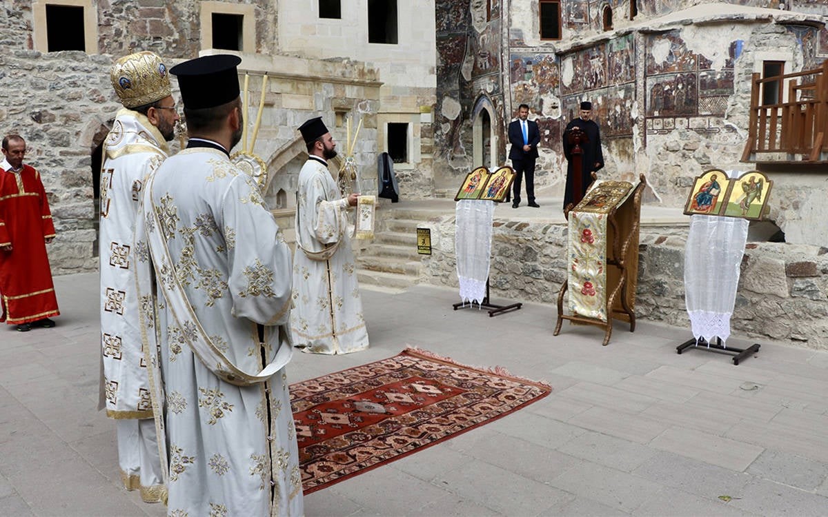 Sümela Manastırı’nda “Meryem Ana’nın Göğe Yükseliş Günü” için yapılan ayin bu yıl önceki yıllardan farklı olarak 8 gün gecikmeli olarak bugün (23 Ağustos) yapıldı.