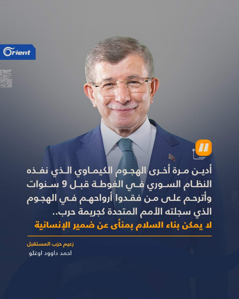 “Ahmet Davutoğlu, Suriyelilerin unutamayacağı bir isim. Devrimin başından beri Suriyelilerle birlikteydi ve halen de öyle. Haksızlığa karşı sözleri ve eylemleriyle, hakikate verdiği destekle unutulmazlar arasına girecek. Adalet, bilgelik ve cesareti bir araya getiren bu gerçek insan unutulmayacaktır. Suriyelilerin kalplerinden selamlar ve takdirler.”