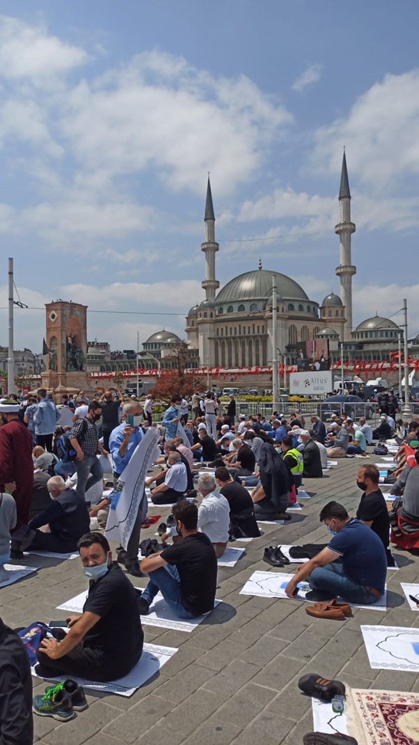 Cuma namazıyla ilk kez ibadete açılan Taksim Camii çevresinde polis yoğun güvenlik önlemleri aldı. Meydana tören için LED ekranlar kuruldu. Basın mensuplarının töreni takip edebilmesi içinde platform hazırlandı.