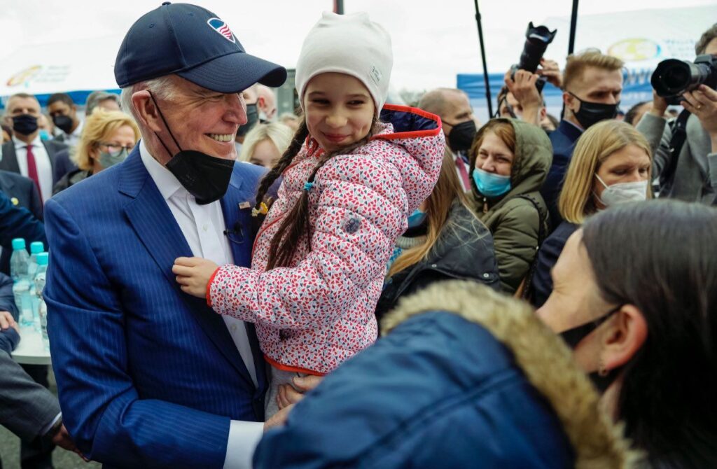 Polonya’nın başkenti Varşova’daki Ukraynalı mültecilerin kaldığı kampı ziyaret eden Biden, burada bir süre önce savaştan kaçan kadın ve çocuklarla sohbet etti.