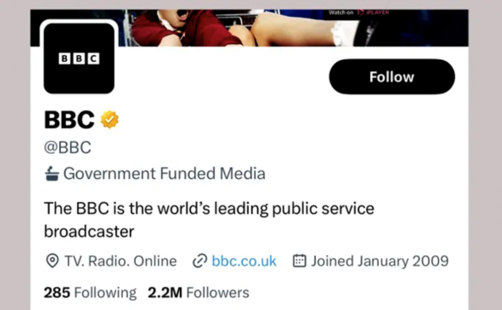 Twitter, dün (9 Nisan) BBC’nin 2.2 milyon takipçili Twitter hesabına “hükümet destekli medya” şerhi koydu. BBC yönetimi daha önce İran, Rusya ve Almanya devlet medya organlarına bu şerhi koyan Twitter’a tepki gösterdi: “Twitter’la bu konuyu çözmek için iletişim halindeyiz. BBC her zaman bağımsız olmuştur. Biz lisans ücreti temelinde Britanya halkı tarafından fonlanıyoruz.”