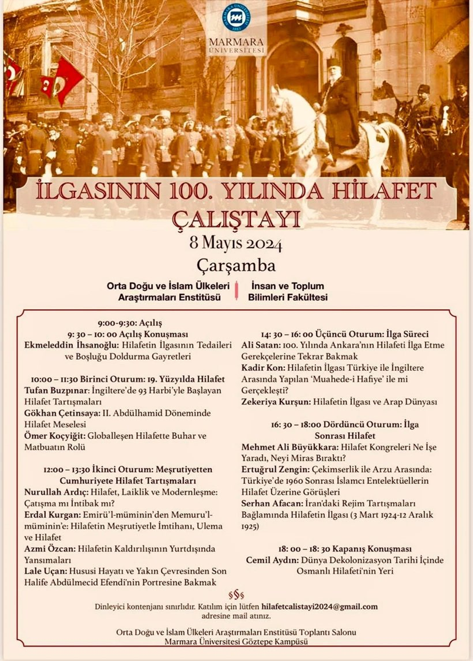 Marmara Üniversitesi Göztepe Kampüsü’nde düzenlenen, tarih profesörlerinin konuşmacı olduğu “İlgasının 100. Yılında Hilafet Çalıştayı” başlıklı akademik sempozyum, sosyal medyada linçine uğradı.