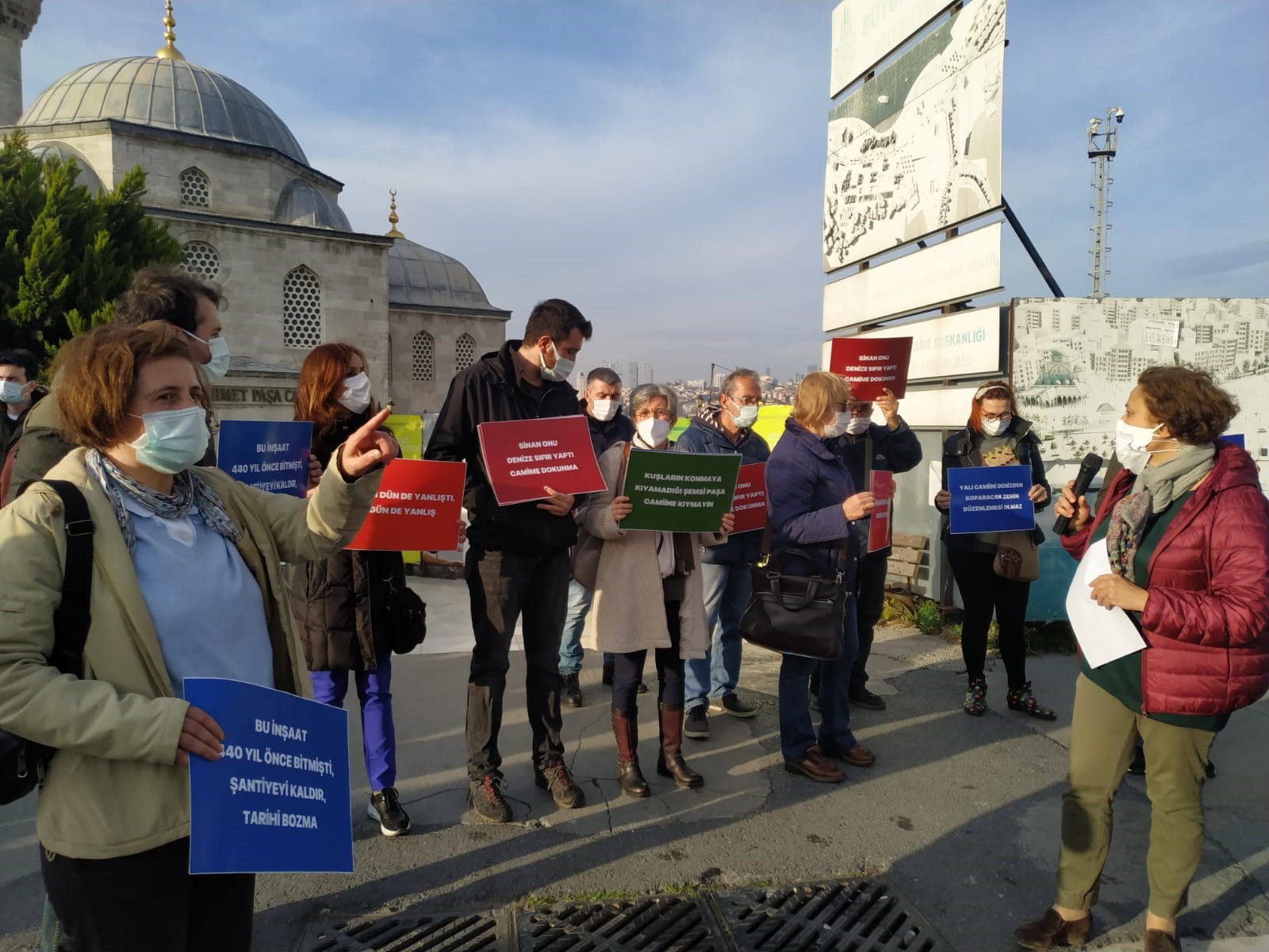 Çalışmaların yeniden başlamasını protesto etmek için dün (8 Ocak) Şemsi Paşa Camii önünde toplanan bir grup basın açıklaması yaptı.