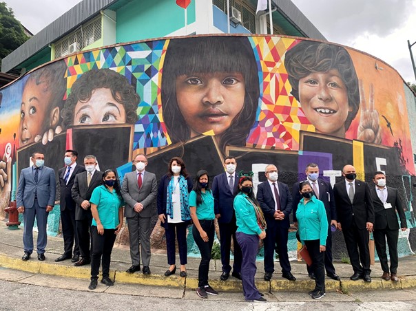 7 Aralık 2020 tarihli fotoğrafta Türkiye-Venezuela Parlamentolar Arası Dostluk Grubu’nun Karakas gezisi sırasında Maarif Vakfı’na yapılan bir ziyaret görülüyor.