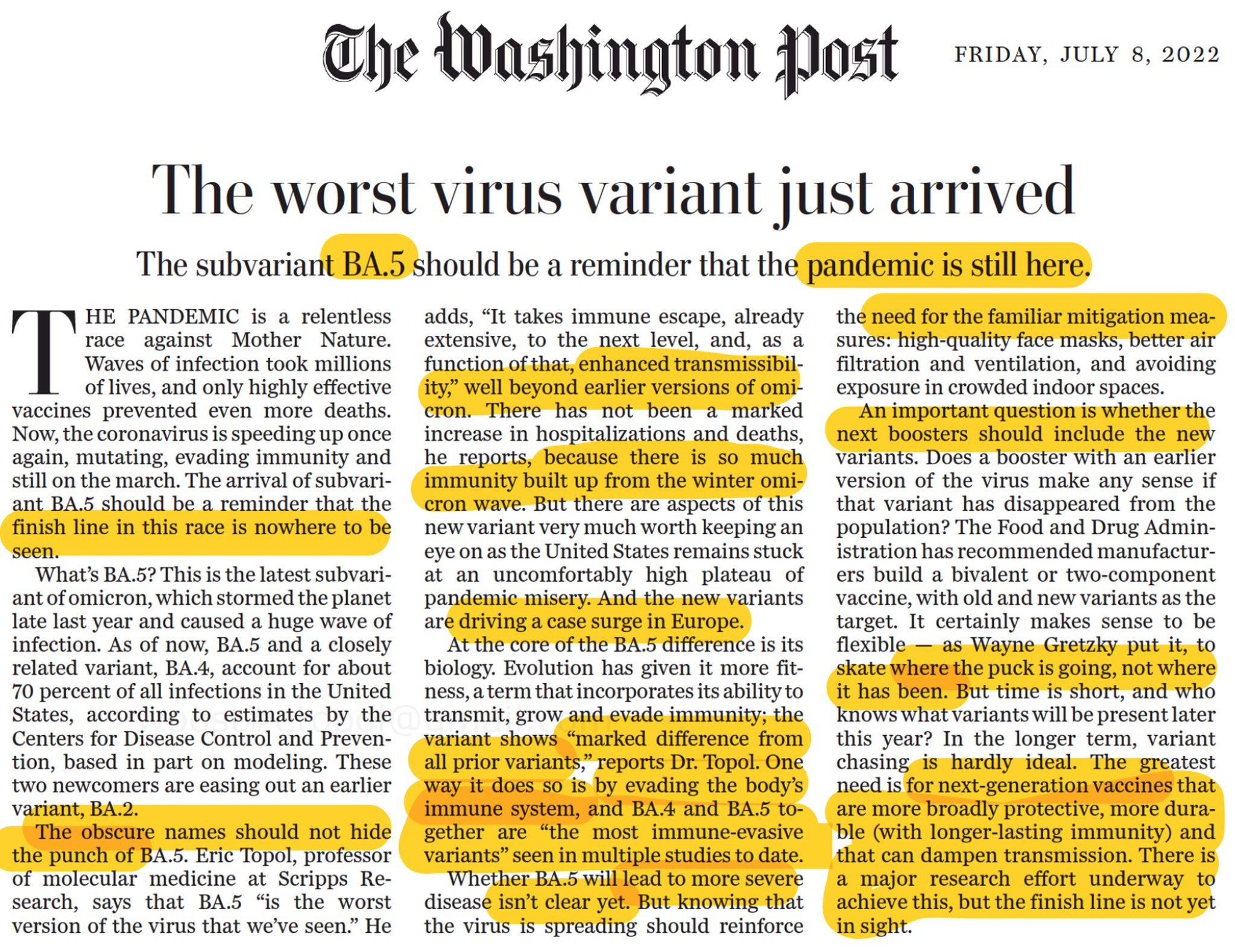 The Washington Post’un görüşlerini paylaştığı Prof. Eric Topol yeni varyantları “BA.5 ve BA.4 daha önceki varyantlardan farklı, bağışıklığı en çok aşan varyant” olarak tanımladı. Yeni Omicron varyantlarının aşılama oranının düşük olduğu ABD’de hastaneye yatış oranını arttırması bekleniyor. ABD basını daha önce hastalığı geçirmiş veya aşılı olduğu için bağışıklığı olanların da hızlı yayılan bu yeni varyantlardan etkilenme olasılığının oldukça yüksek olduğunu vurguluyor.
