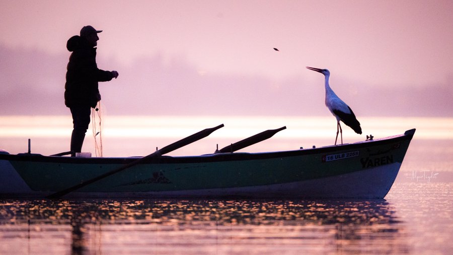 Nihayet beklenen kavuşma gerçekleşti. Yaren Leylek 14. yılında da varım dedi. Dün göçten gelip önce yuvasına konup eşiyle özlem giderdi ve bu sabah da soluğu Adem Amca’nın kayığında aldı. Adem Amca ise onu böyle ayakta karşıladı.