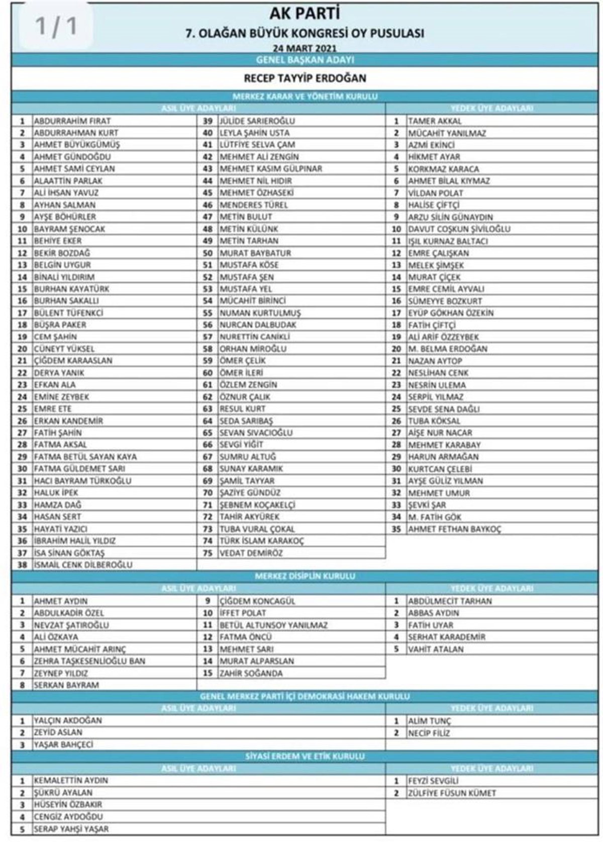 Listede yer alan Binali Yıldırım’ın, Numan Kurtulmuş ile birlikte 2’ye yükseltilen Genel Başkanvekilliği görevini paylaşacağı öğrenildi.
