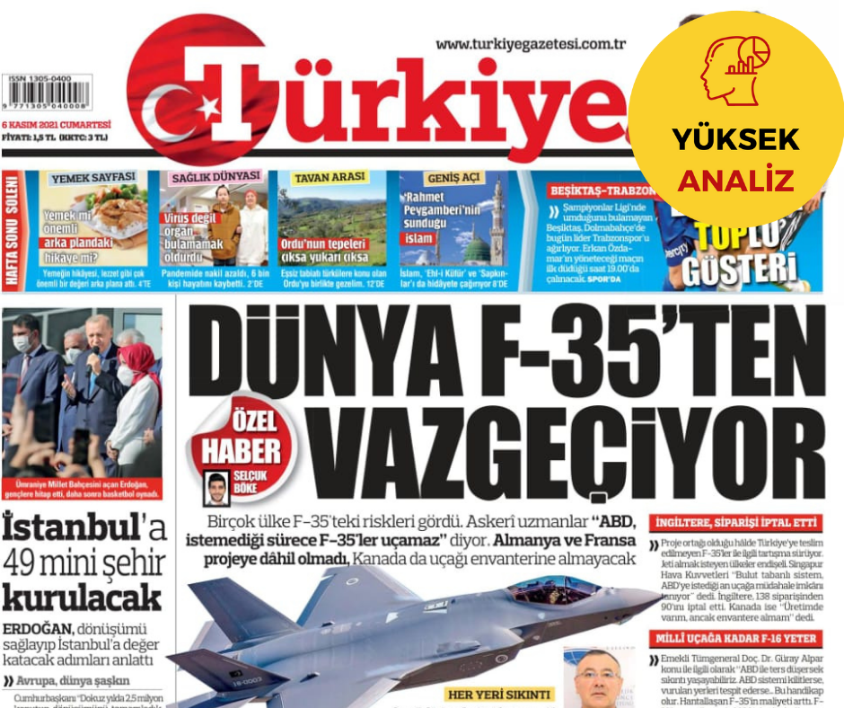 HaberlerManşet YÜKSEK ANALİZ | Türkiye gazetesine göre ‘Dünya’ F-35’i beğenmedi Serbestiyet - 6 Kasım 2021 - 11:43