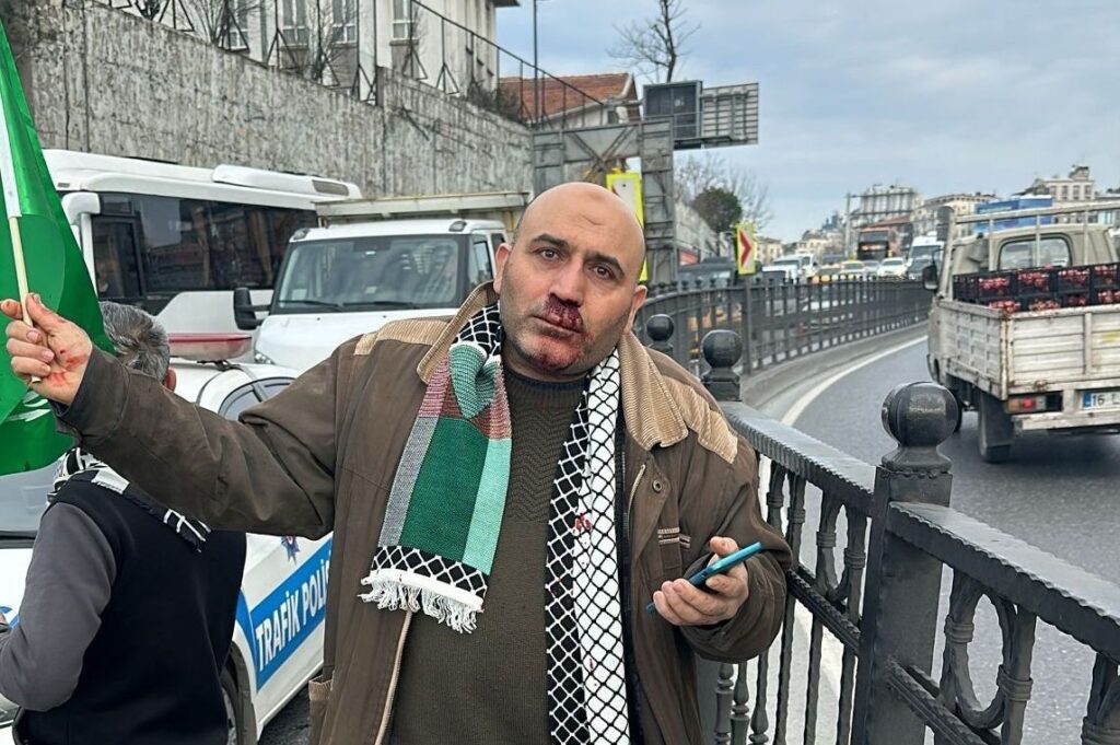 Yazının başlığında “yumruk atan”ı okuyunca hemen anlamışsınızdır. Bir süre önce hakeme yumruk atan adamı konuşuyorduk, şimdi de Filistin’le dayanışma adı altında çeşitli İslamî kesimlerin gövde gösterisi miting sırasında, bir gencin elinde Tevhid bayrağı/flaması taşıyan bir kişiye attığı yumruğu konuşuyoruz. Üniversite öğrencisi olduğu belirtilen gencin, ağzını burnunu kanattığı adama “Biz Türk’üz. Bir Türk olamadınız!” diye bağırdığını da olay mahallinde çekilen videodan izliyoruz. Yumruğu yiyen kişi, “Ben hem Türküm hem Müslümanım,” diyor. Polis yumrukçu genci karakola götürüyor ve tutuklanıyor.